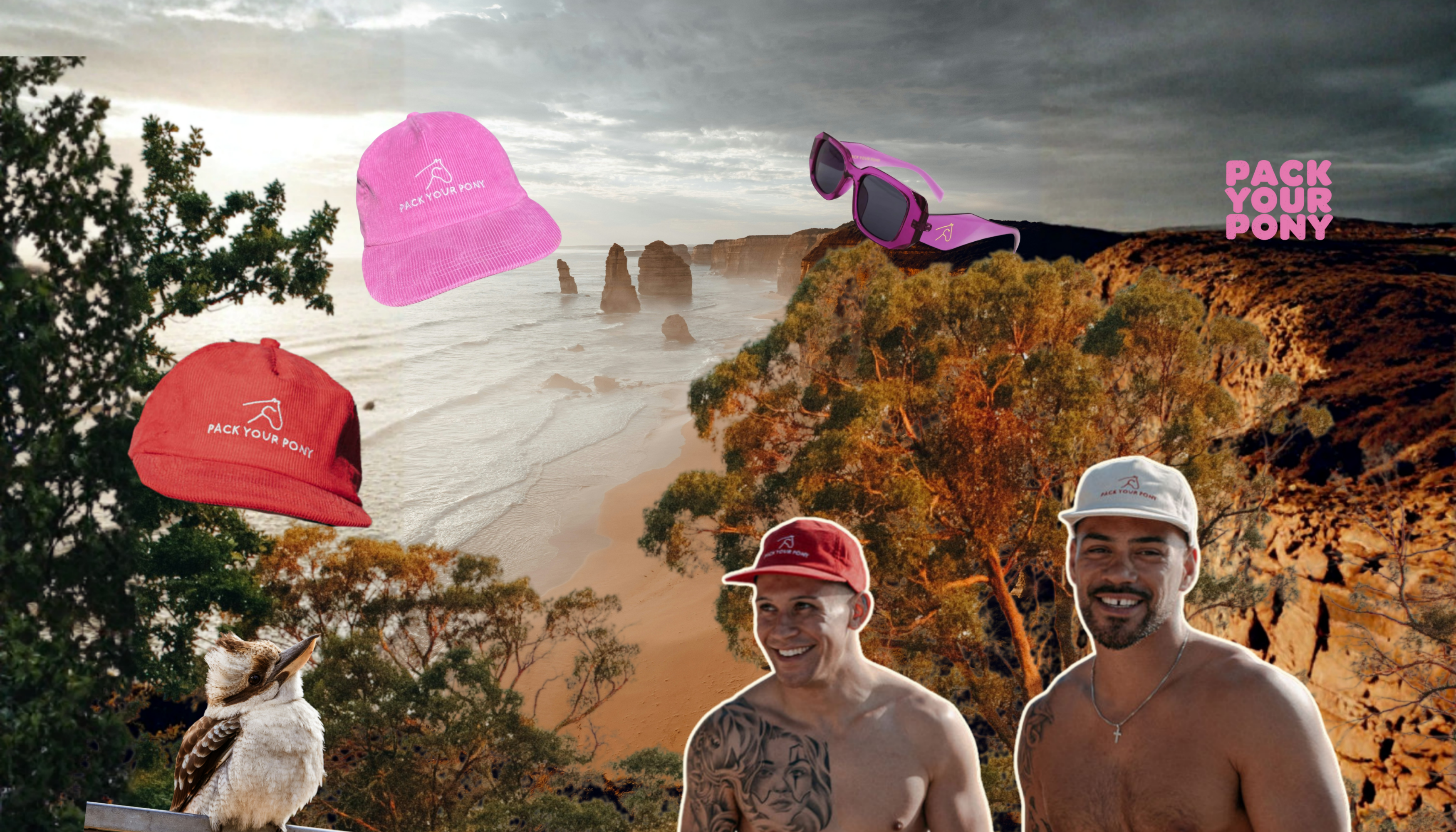 Pack Your Pony takes you on a wild Aussie adventure with every collection drop! Imagine snorkelling the Great Barrier Reef or soaking in Melbourne's street art vibes, all captured in our hats , glasses, and soon-to-be clothing. Our hand-picked colour trios channel the rosy glow of desert sunsets and the vibrant greens and blues of native birdlife, like curating the perfect road trip playlist. Dive into Pack Your Pony, where limited editions bring Australia's iconic landscapes to life!